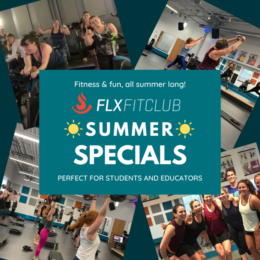 Get 12 weeks of unlimited fitness classes or a 10-class Summer FLX Pass at a special rate. Perfect for anyone with a little extra time or flexibility in their schedule during the summer months. (Students and teachers, we’re talking to you!)